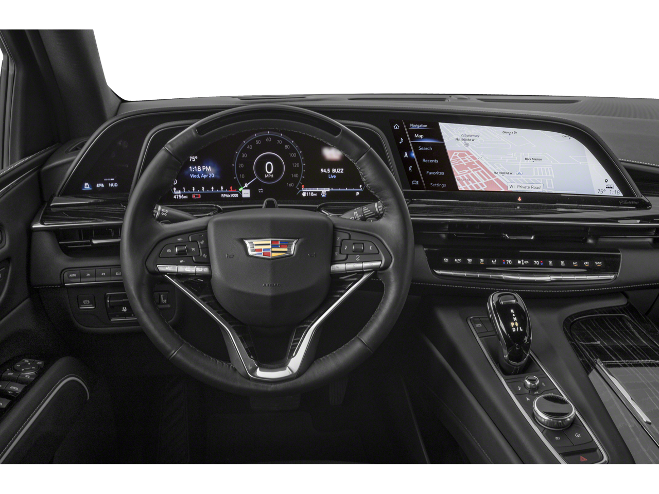 LPO, ONYX PACKAGE includes (SFZ) Monochrome Cadillac emblems, LPO, (RIK) Gloss Black Escalade nameplate, LPO, and (SSX) 22" 12-Spoke Gloss Black finish alloy wheels, LPO (Includes wheel locks. , SUPER CRUISE a hands-free driver assistance system for use on compatible roads (Beginning with start of production through October 2, 2022, vehicles will be forced to include either (00U) Not Equipped with Super Cruise and/or (02O) Not Equipped with Super Cruise, which will remove Super Cruise and its content. See dealer for details or the window label for the features on a specific vehicle. Always pay attention while driving and when using Super Cruise. Do not use a hand-held device. Visit cadillac.com/supercruise for compatible roads and full details.), SPORT PLATINUM PREFERRED EQUIPMENT GROUP includes standard equipment, SEATS, SECOND ROW BUCKET, POWER RELEASE (STD), SEATS, FRONT BUCKET (Includes Semi-Aniline leather, 16-way driver and front passenger adjustments with massage.) (STD), REAR AXLE, 3.23 RATIO, OLED INFOTAINMENT EXPERIENCE WITH NAVIGATION AM/FM/SiriusXM with 360L with 16.9" diagonal color information display (displays and controls navigation, music and all features and functions of the vehicle), personalized profiles for each driver's settings, Natural Voice Recognition, Phone Integration for Wireless Apple CarPlay/Wireless Android Auto capability for compatible phone, Connected Apps and Teen Driver (STD), NOT EQUIPPED WITH 2ND ROW EXPRESS-UP WINDOW CONTROL see dealer for details. (Beginning with start of production, vehicles will be forced to include (00N) Not Equipped with 2nd Row Express-Up Window Control, which removes only 2nd Row Express-Up Window Control functionality. See the window label for the features on a specific vehicle.), LPO, MONOCHROME CADILLAC EMBLEM, LPO, 22" (55.9 CM) 12-SPOKE GLOSS BLACK ALLOY WHEELS includes wheel locks.